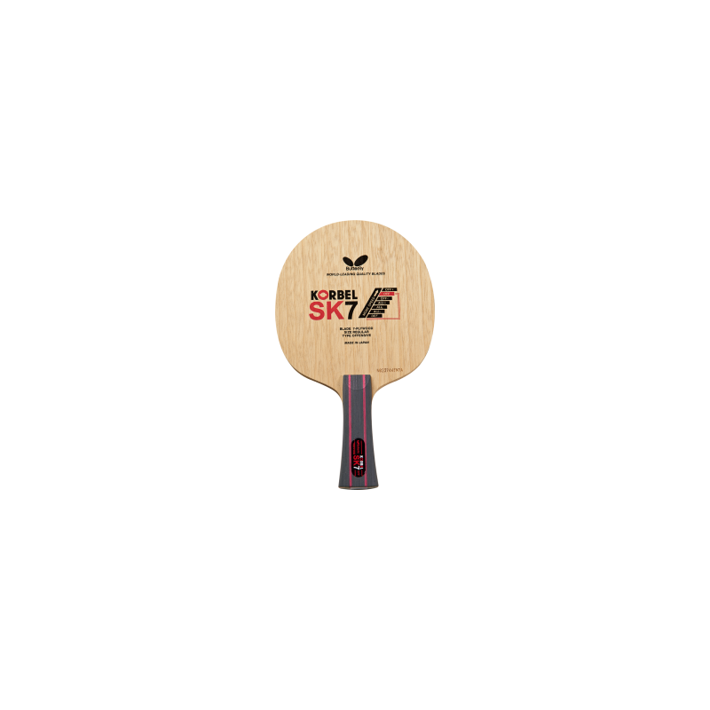 La Korbel SK7 es una madera ofensiva vanguardista de Butterfly. Está basada en la inmensamente popular madera japonesa, SK7, y se ha diseñado específicamente para el tenis de mesa moderno Europeo sin pegamento rápido.