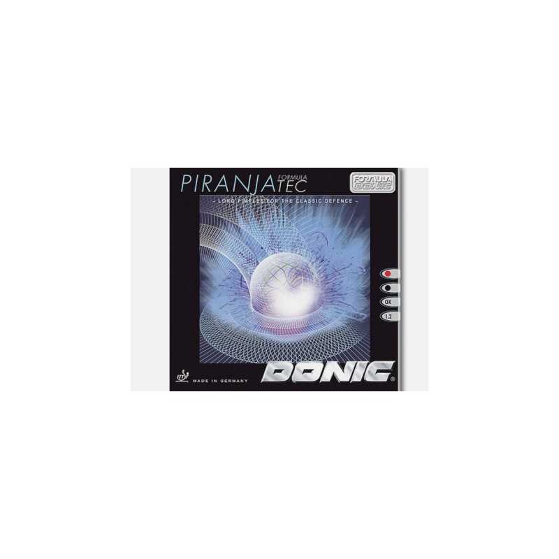 La goma del defensivo técnico. DONIC Piranja Formula TEC es blanda, muy elástica y con excelente grip. Permite al jugador realizar mayor efecto de devolución contra el topspin. Los picos son rápidos pero fáciles de controlar gracias al efecto del pegamento rápido" ya incorporado. Las variaciones de efecto, los bloqueos y los contraataques los realiza con gran exactitud.