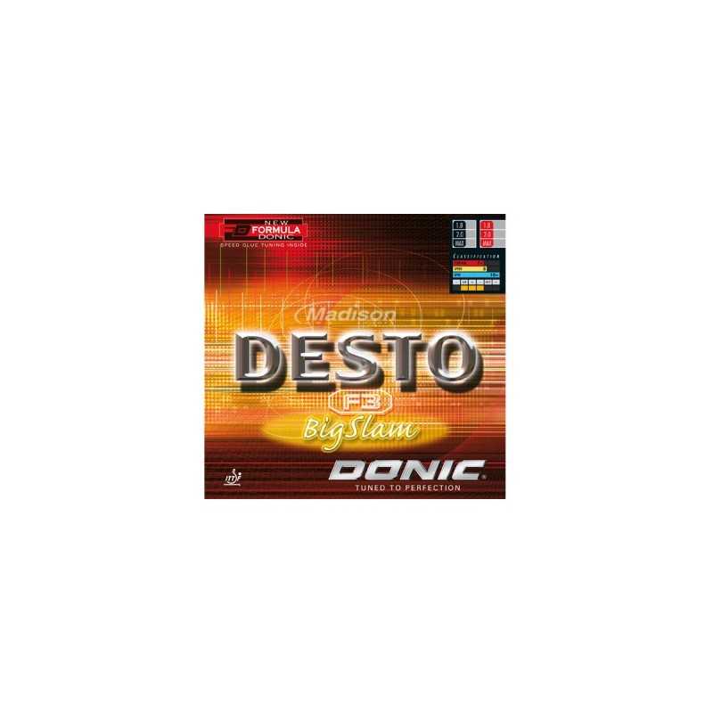 DONIC DESTO F3 Big Slam está recomendada para jugadores que han utilizado pegamento rápido con anterioridad y valoran disponer de un tacto notable, sonido impresionante y estabilidad por encima de máxima velocidad. Big Slam será una goma muy popular una vez prohibida la cola, seguro. Es la goma DESTO FORMULA que más sonido produce, exactamente igual que como si estuviera encolada. Gran control y con el mismo efecto de las anteriores "encoladas"