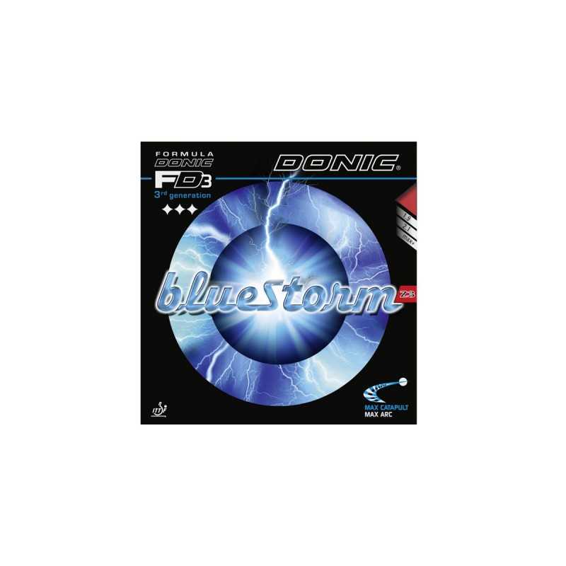 DONIC BlueStorm Z3: Una tormenta de rayos!Z3 con su gran poro y esponja de 42.5º es considerada bastante blanda. Este es su factor diferencial. No sólo podrás notarla, también podrás oirla.Quienes eran seguidores del pegamento rápido se entusiasmaran con su delicioso sonido. Un golpe atacante con BlueStrom Z3 suena como el ruido de un rayo pero con control total.¡Siente el sonido y potencia del rayo!