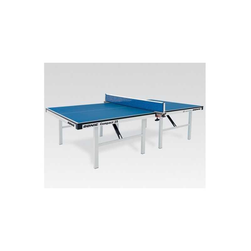 La clásica mesa de competición DONIC con tablero de 25 mm.- Mesa de competición aprobada por la ITTF- Tablero de 25 mm- Espacio de almacenamiento mínimo- Bajo esfuerzo de instalación- Fabricada en AlemaniaMesa de competición clásica aprobada por la ITTF que consta de 2 mitades, que se fijan en la posición de juego mediante un elemento de conexión. La mesa DONIC Compact 25 requiere solo un espacio de almacenamiento mínimo de menos de 20 cm de profundidad. Las grandes ruedas en el interior de la mesa (lado de la red) facilitan el transporte de las mitades individuales.Peso aprox: 105 KG Color: Azul