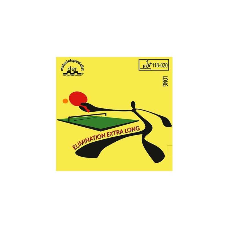 Con ELIMINATION EXTRA LONG, der-materialspezialist ha llegado al límite de lo permitido.Las estrictas regulaciones de la ITTF se han agotado por completo con este caucho disruptivo. El resultado es una goma de pico largo con un efecto disruptivo extremadamente alto y valores de rotación muy altos. ELIMINATION EXTRA LONG se puede usar tanto para un juego de bloqueo disruptivo cerca de la mesa como para un juego defensivo clásico fuera de la mesa.ELIMINATION EXTRA LONG: ¡Destruye a tu oponente!